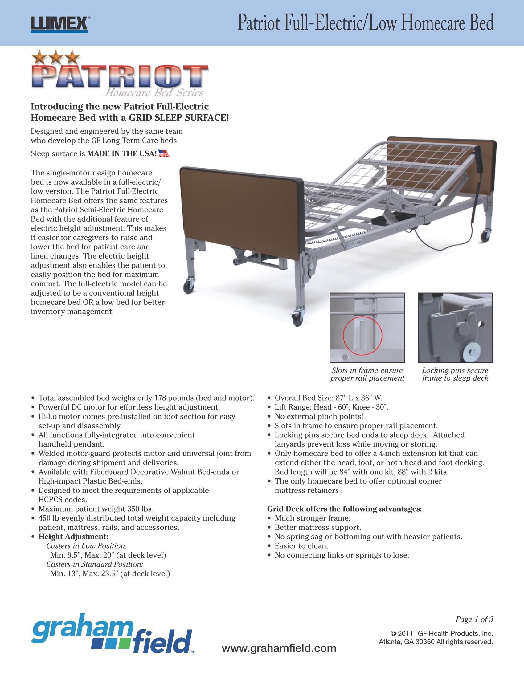 version. The Patriot Full-Electric Homecare Bed offers the same features as the