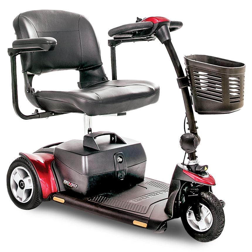 KRAUS AAMCARE SCOOTERS are available in 3-Wheel and 4-Wheel Models. Select a model that is easily Take-Apart or Foldable. Many units are Heavy-Duty and primarily used for Outdoor Use. Manufacturers include the Pride Mobility Go-Go, Golden Technology, Amigo Shabbat, Shoprider, PaceSaver, Drive and More. Front-Basket and Batteries included. Options include a back-basket, heavy-duty batteries, flag, rear-view mirror, cover and more.